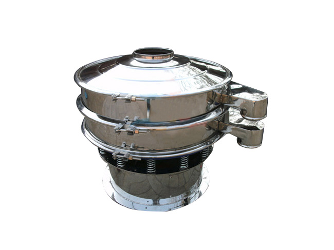 旋振篩(圓形振動(dòng)篩)由立式振動(dòng)電機(jī)作激振源,因?yàn)槠渖舷露酥劐N安裝在發(fā)動(dòng)軸兩側(cè),使電機(jī)的旋轉(zhuǎn)運(yùn)動(dòng)轉(zhuǎn)變?yōu)榇怪薄⑺?、傾斜的三次元運(yùn)動(dòng)。  旋振篩產(chǎn)品特點(diǎn):  設(shè)計(jì)精巧,耐用,適合任何粉類(lèi)以及粘性液體的篩分。  操作簡(jiǎn)單,換網(wǎng)方便,易于清洗?! 『Y網(wǎng)無(wú)阻塞,粉末無(wú)飛揚(yáng)。  雜質(zhì)以及粗料自動(dòng)排出,并且可以與給料設(shè)備、輸送設(shè)備配套使用,處理量大,生產(chǎn)效率高。  尺寸小,節(jié)省空間,易于移動(dòng)?! ∫子陴B(yǎng)護(hù),可單層或多層使用。  篩網(wǎng)設(shè)計(jì)合理耐用,換網(wǎng)只需3-5分鐘。  篩網(wǎng)可達(dá)5層,篩分出6種不同顆粒大小的物料